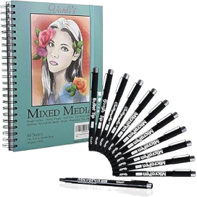 Vanli's Hardcover Mixed Media Sketch Book with Elastic Closure 9"X12", Bundled with 12 Pack Microline Pens Fine Point. Waterproof Archival Pens with Sketch Pad for Drawing