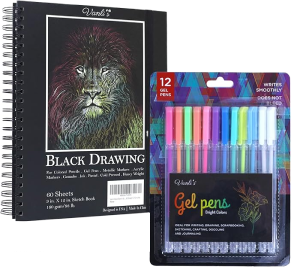 Vanli's Hardcover Black Paper Sketchbook & 12 Pack Ball Point Gel Pens Set
